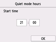 قم بتمكين هذه الوظيفة في الطابعة إذا كنت تريد خفض ضوضاء التشغيل، على سبيل المثال، عند الطباعة في الليل. بالإضافة إلي ذلك،يمكنك تحديد النطاق الزمني لتتمكن من تخفيض ضوضاء التشغيل.