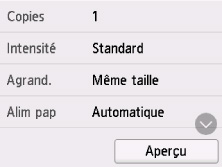 Vous pouvez modifier des paramètres de copie tels que l'agrandissement ou l'intensité.