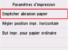 Cette section décrit la procédure à suivre pour modifier les paramètres dans l'écran Paramètres périphérique, en prenant pour exemple les étapes requises pour spécifier Empêcher abrasion papier.