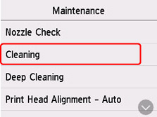 Atunci când efectuaţi curăţarea capului de imprimare, verificaţi spaţiul liber din cartuşul de întreţinere. Dacă spaţiul liber este insuficient, înlocuiţi cu un cartuş de întreţinere nou. În cazul în care spaţiul liber din cartuşul de întreţinere este insuficient, se afişează un mesaj, iar operaţia de curăţare nu poate fi efectuată.