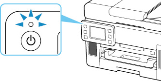 拔除電源線時,按電源(ON)按鈕,然後確認電源(ON)指示燈熄滅。 如果在電源(ON)指示燈亮起或閃爍時拔除電源線,將有可能造成列印頭乾涸或堵塞,並且列印品質可能會降低。