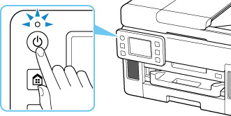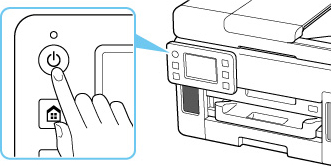 حتى إذا كانت الشاشة باللمس مطفأة، وكان المصباح تشغيل (ON) مضيئًا، تكون الطابعة قيد التشغيل.