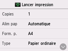 Sélectionnez une alimentation papier (Réceptacle arrière/Cassette/Automatique) dans laquelle le papier est chargé.
