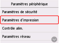 Cette section décrit la procédure à suivre pour modifier les paramètres dans l'écran Paramètres périphérique, en prenant pour exemple les étapes requises pour spécifier Empêcher abrasion papier.