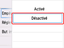L'écran de configuration du paramètre sélectionné s'affiche.