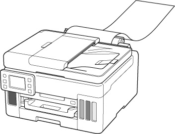 Labai ilgą popierių įdėkite neištraukdami popieriaus atramos. Atsižvelgiant į popieriaus svorį, priekinis kraštas gali pakilti ir spausdinant gali pasislinkti. Pasirūpinkite, kad priekinis popieriaus kraštas nepakiltų, pvz., laikykite tą dalį, kuri išsikiša iš galinio dėklo.