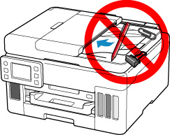Introduceţi hârtia astfel încât mâna să nu atingă direct partea din centrul tăvii din spate atunci când îndepărtaţi obiectul străin.