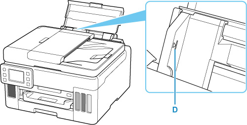 3. Glisaţi ghidajul pentru hârtie (C) din dreapta pentru a deschide ambele ghidaje pentru hârtie.