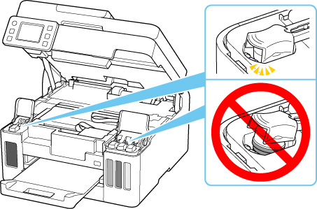 確保墨水盒的墨水盒蓋已關緊。 如果墨水盒蓋開啟,請正確關閉墨水盒蓋。