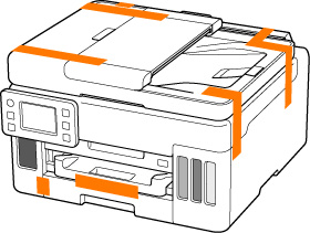 使用膠帶固定印表機上的所有蓋板以防止其開啟。