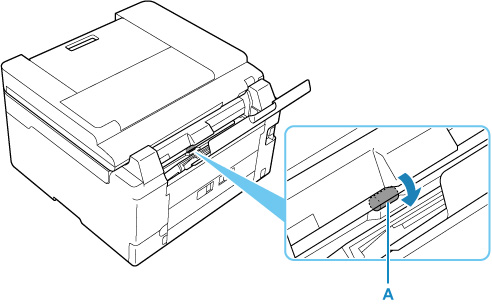 2. Tout en faisant faire plus de deux tours au rouleau d'entraînement du papier (A) situé à l'intérieur du réceptacle arrière, nettoyez-les avec un chiffon humidifié et fermement essoré.
