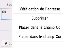 • C: Sélectionnez le(s) destinataire(s) à partir de l'historique de saisie.