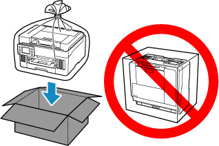 Pak de printer in een stevige doos in en zorg dat de printer rechtop staat (de onderzijde bevindt zich aan de onderkant). Gebruik voldoende beschermend materiaal om een veilig transport te garanderen.