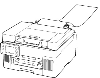Ao imprimir em papel de comprimento longo, suporte o papel de saída com suas mãos ou use a impressora em um local onde o papel não caia. Se o papel cair, o lado impresso poderá ficar sujo ou arranhado. Além disso, ao suportar o papel com mãos, não puxe o papel à força durante a impressão.