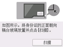 按照屏幕上的说明将原稿放置在稿台玻璃上,然后选择扫描。 扫描正面后,出现确认屏幕。
