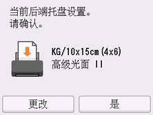 如果触摸屏上的页尺寸和介质类型与后端托盘中装入的纸张尺寸和类型相匹配,请选择是。