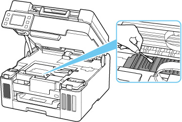 Ak sa po opätovnom čistení problém nevyrieši, môžu byť znečistené výčnelky vo vnútri tlačiarne. Vatovým tampónom alebo podobným materiálom zotrite z výčnelkov atrament.