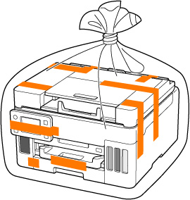 Sử dụng băng dính để giữ chặt tất cả các nắp trên máy in để chúng không bị mở trong khi vận chuyển. Sau đó, cho máy in vào túi nhựa dẻo.