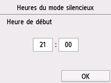 L'écran permettant de spécifier l'heure de début/de fin s'affiche.