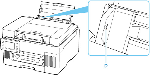 Fare scorrere la guida della carta sulla destra (C) per aprire entrambe le guide della carta.