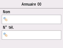 L'écran servant à enregistrer le numéro de fax/téléphone du destinataire et son nom s'affiche. Passez à l'étape suivante.