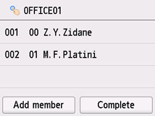 Lorsque vous entrez le numéro ID et que vous sélectionnez OK, les destinataires enregistrés s'affichent dans l'ordre à partir du numéro ID sélectionné.