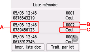 • C: L'option Couleur est affichée pour la réception/transmission en couleur. Rien ne s'affiche pour la réception/transmission en noir et blanc.