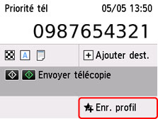 Sélectionnez Enr. profil dans chaque écran d'attente ou dans l'écran affiché après que vous avez spécifié les paramètres.