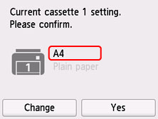 Se il formato pagina sul touchscreen corrisponde al formato della carta caricata nel cassetto, selezionare Sì (Yes).