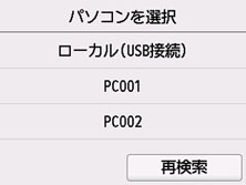 USB接続の場合は[ローカル(USB接続)]、LAN接続の場合は転送先のパソコンを選んでください。
