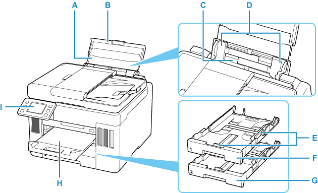 - Open deze lade om een document in de ADF te plaatsen. U kunt twee of meer documentvellen met hetzelfde formaat en dezelfde dikte plaatsen. Plaats het document met de zijde die u wilt scannen omhoog.