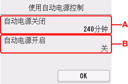 A: 指定打印机在多长时间内未执行任何操作或无打印数据发送到打印机时自动关闭。