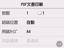 - 一度に250ページまで印刷できます。251ページ以上のPDFファイルの場合、タッチスクリーンに[指定した文書データ(PDF)は印刷可能なページ数を超えています 超えたページは印刷できません 印刷を続けますか?]と表示されます。[はい]を選ぶと、印刷が開始されます。251ページ以上のPDFファイルを印刷したい場合は、パソコンから印刷してください。
