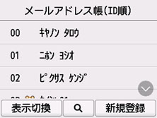 • すでに送信先が登録されていて名前の順に表示されているときは、[表示切換]を選んでください。ID番号順に表示されます。