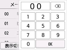 • C:選ぶと、登録した送信先のID番号を選ぶ画面が表示されます。登録した送信先をID番号で検索できます。