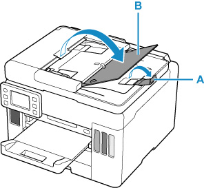 Deschideţi opritorul de documente (A).