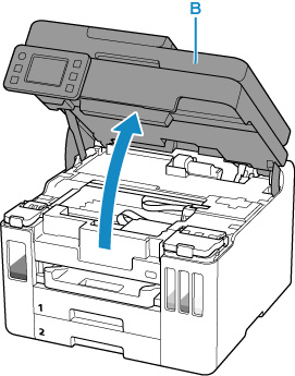 2. Deschideţi unitatea de scanare / capac (B).