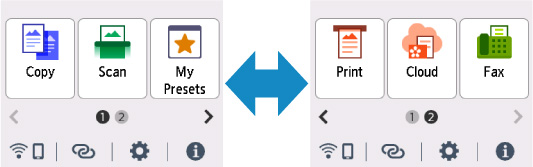 Atingeţi cu vârful degetului ecranul ACASĂ de pe ecranul senzitiv, pentru a selecta meniuri cu funcţii de copiere, scanare etc.