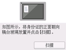 按照屏幕上的说明将原稿放置在稿台玻璃上,然后选择扫描。 扫描正面后,出现确认屏幕。