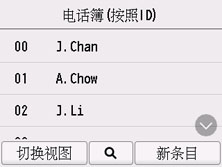 通过输入ID号码并选择OK,按所选接收方ID号码的顺序显示已注册的接收方。