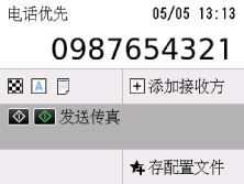 注释- 如果尚未对打印机进行发送/接收传真的设置,第一次选择主页屏幕上的 传真时触摸屏上会显示设置信息。 进行传真设置时,请按照触摸屏上的说明进行操作。