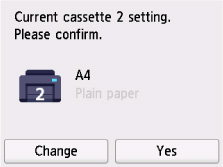 Om sidstorlek på pekskärmen matchar storlek och typ för det papper som fyllts på i kassetten väljer du Ja (Yes).