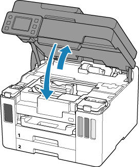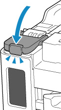 Stäng bläckbehållarlocket helt.