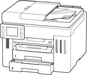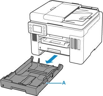 Khi nạp giấy lớn hơn cỡ A4, cát-xét được mở rộng nên sẽ dừng ở vị trí nhô ra khỏi máy in. Đẩy mạnh cát-xét vào có thể gây hư hỏng cho máy in hoặc cát-xét.