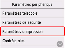 Cette section décrit la procédure à suivre pour modifier les paramètres dans l'écran Paramètres périphérique, en prenant pour exemple les étapes requises pour spécifier Empêcher abrasion papier.