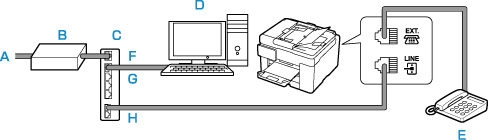 - E:電話機(留守番電話機)