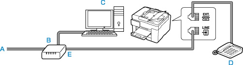 ここで紹介する接続方法は代表例です。すべての接続を保証するものではありません。詳しくは、プリンターと接続するネットワーク機器(xDSL(Digital Subscriber Line)モデムやターミナルアダプターなどの制御装置)に付属している取扱説明書を参照してください。