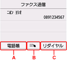 ファクス/電話番号の入力または発信履歴からの番号選択: