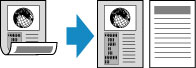 Hvis stiftesidene som er angitt for Dobbelt (Duplex) og 2-sidig (2-sided) er forskjellige, kopiers originalen slik at siden vendes vertikalt.