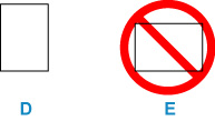 Lägg alltid i papper i stående orientering (D). Om du fyller på papper i liggande orientering (E) kan det fastna.